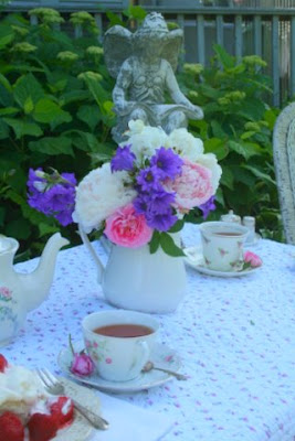 It is a beautiful day to be in the garden today so I hope you can join me for a spot of tea and some strawberry shortcake.