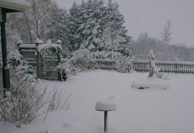Now for the beyond-we have returned to winter here.Several inches of snow came down in the last 18 hours and I think the winds are picking up. I do like the cleaner look of snow but does this mean I am done" spring' cleaning for awhile.