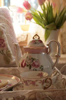 Hi Carolyn! Oh, what a sweet breath of spring pinkness - even if it was snowing outside your windows! I'm living the cold snow through your blog!! The tea pot is so pretty too!