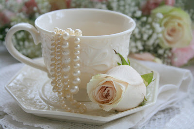 I have always loved how pearls look against beautiful teacups!! Beautiful!