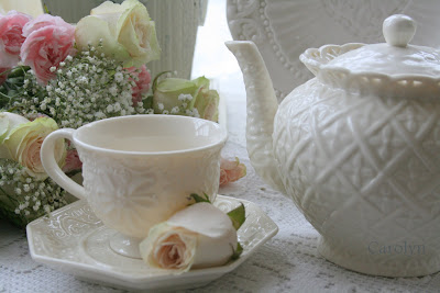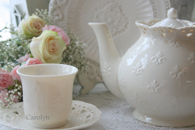 Hi carolyn, all your pictures look so beautiful and romantic.I love the teapot with the bird on top, it's so pretty....Kathy