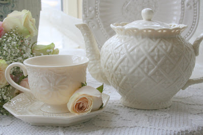 I love your teapots! But, the color roses you find are what kill me. The white with a hint of pink roses are always my favorite. So pretty.