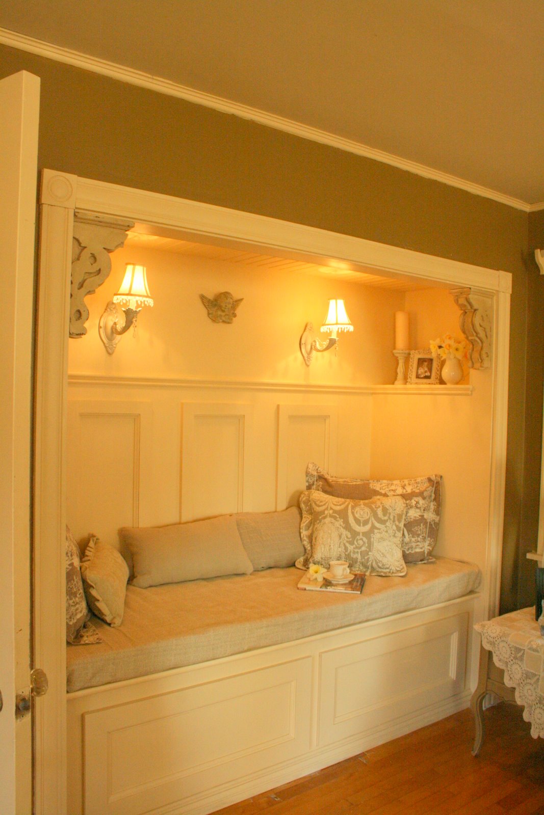 That was a great idea to make the reading nook and it does look cozy. I like the mirror between the lights; guess you'll have to leave it up for a few days to see whether it works for you.