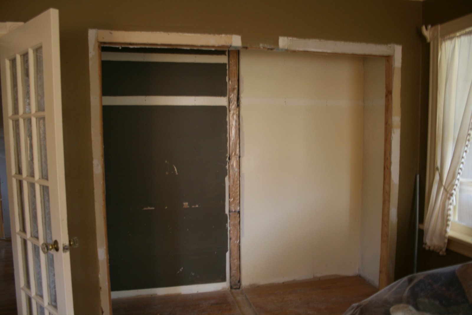 Now this is what it looked like when the carpenter took off the wooden doors and knocked out the dividing wall.