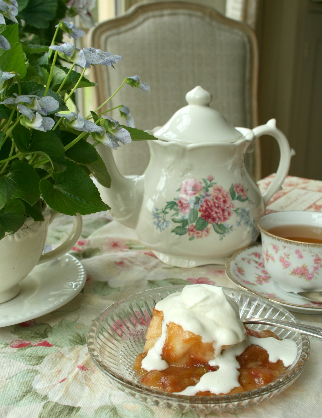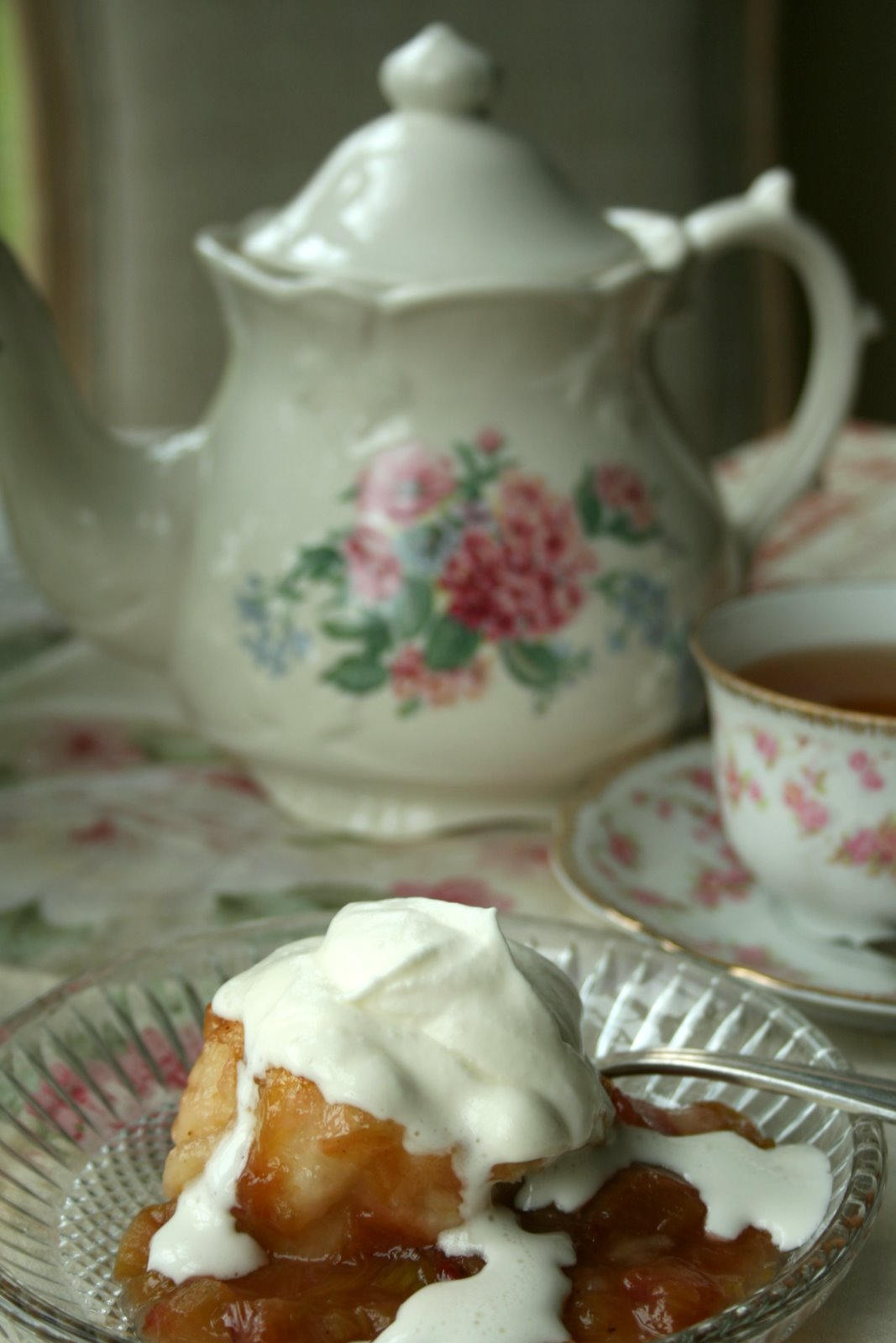 MMMMMMMMM what a yummy way to spend a rainy day..... it looks and sounds good,, I love rhubarb,,,, your tea set is so beautiful..... have a great week.