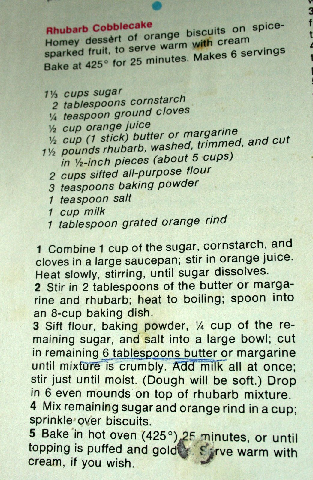 We got some much needed rain yesterday with cooler temperatures and a few showers this morning so it is a good day here for some comfort food. The rhubarb is ready now in our garden so the first thing I make every year with it is rhubarb cobblecake.