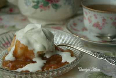Hi Carolyn: I have a similar rhubarb recipe to yours but it is a Pillsbury one called Rhubarb-Strawberry Puff. It is a favourite of the family. Looked delicious on your fine china. Valerie