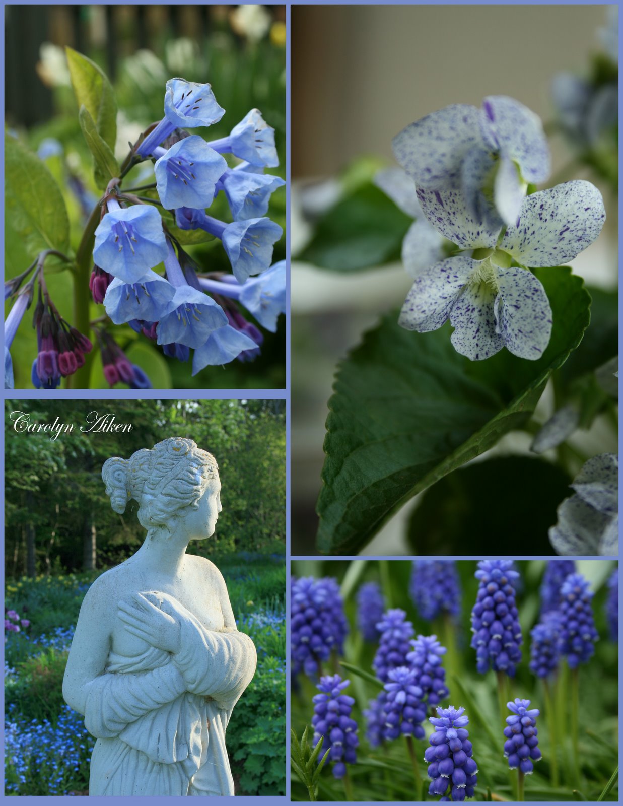 Stunning Carolyn! Your blues are very uplifting! Beautiful gardens!! Love your sculpture and the texture and light and everything about your post and gardens! My Lilacs are almost going by... that is the late bloomers... the French ones have even already been pruned back. I look forward to seeing yours!
