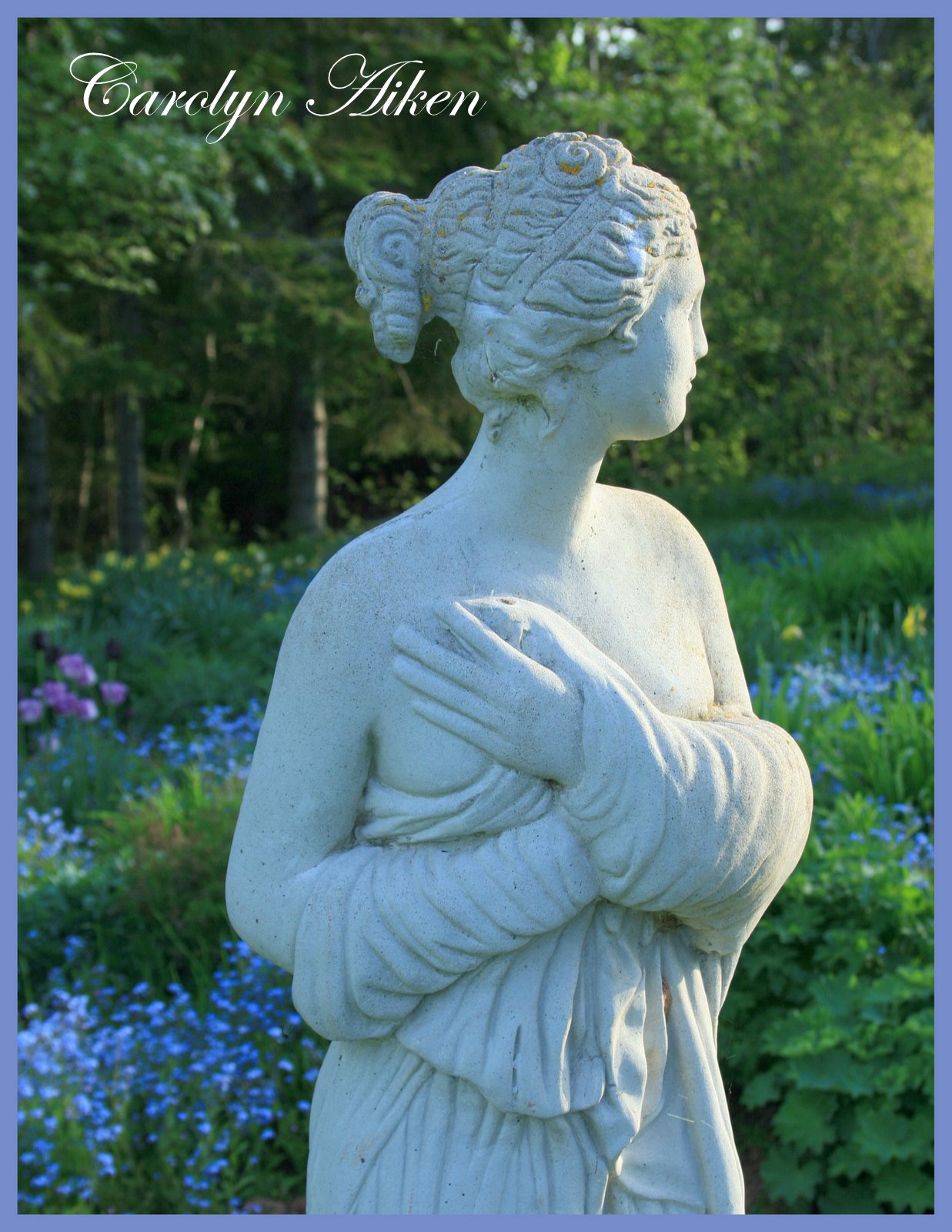 Your statue is gorgeous and so are all of your beautiful blue blooms! I especially love the sweet forget-me-nots! Love, Paula