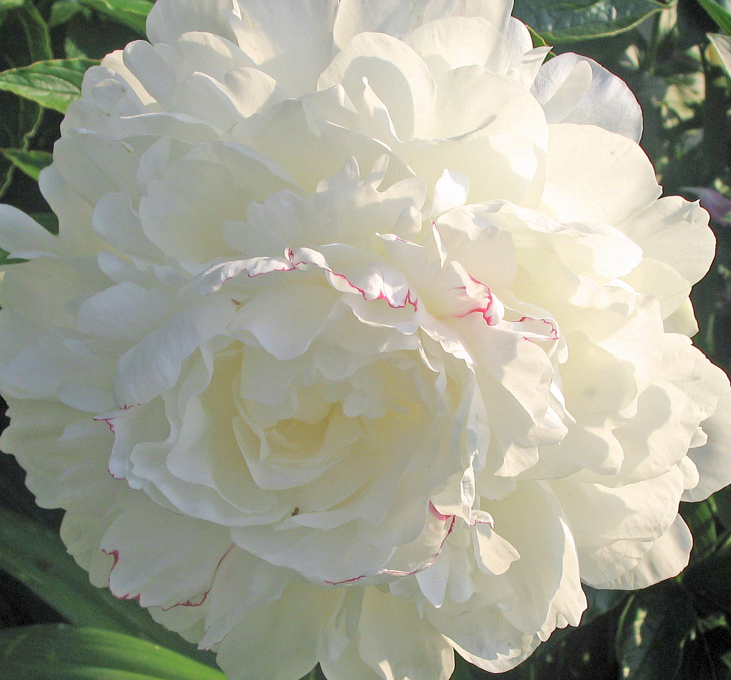 This is a Festiva Maxima peony that came from my Dad's garden many years ago. It is taller then some and very fragrant. It has a hint or red in it.