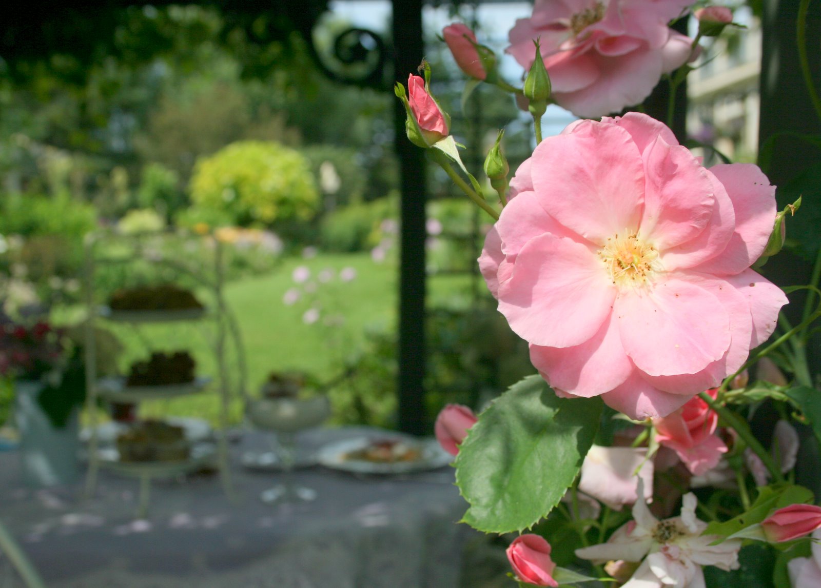 While we sit and enjoy breakfast it is lovely to enjoy the surrounding beauty.This rose is Antique.