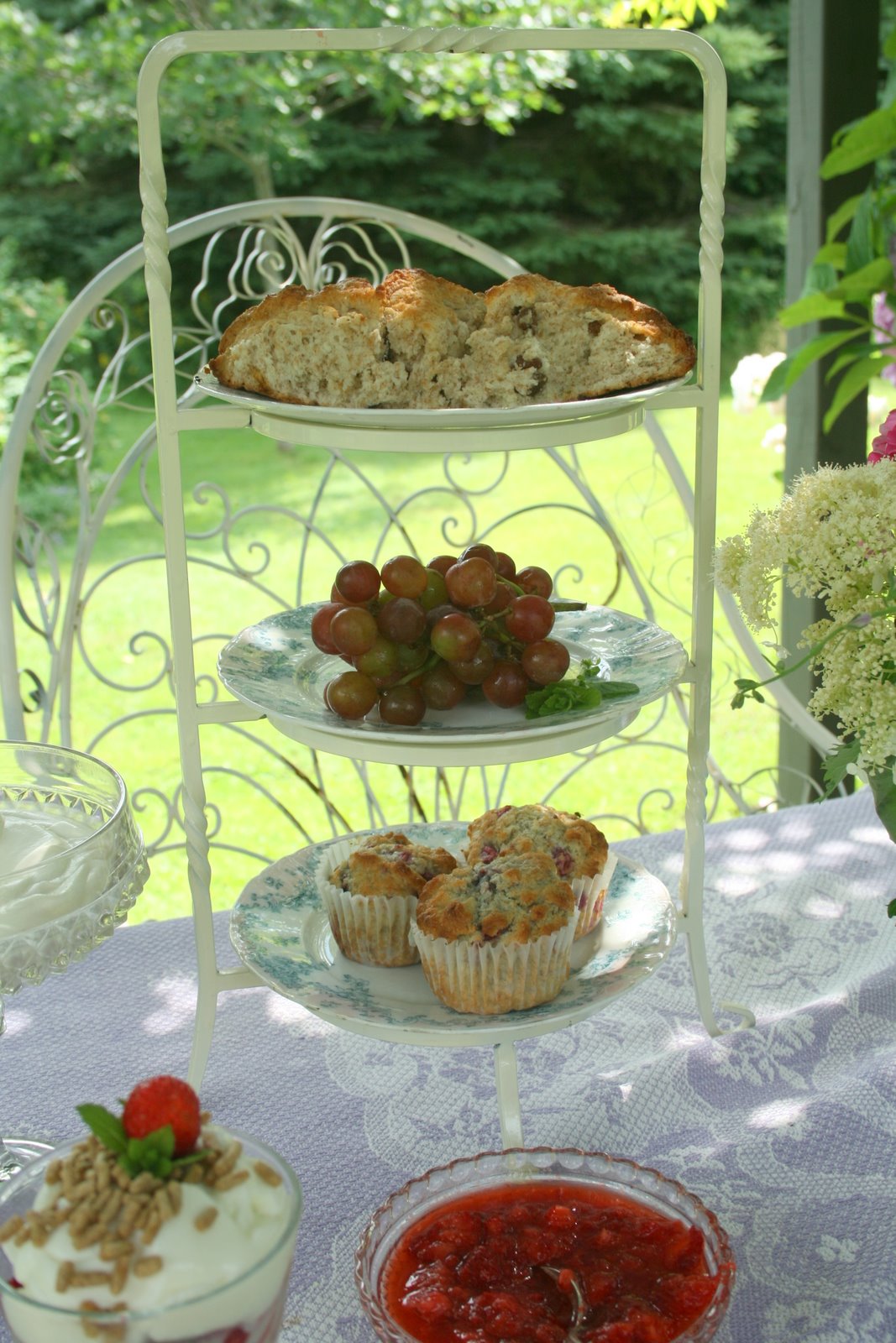 What a beautiful setting! I would want to stay out there all day and into the evening. Everything looks delicious. Such a pretty table!