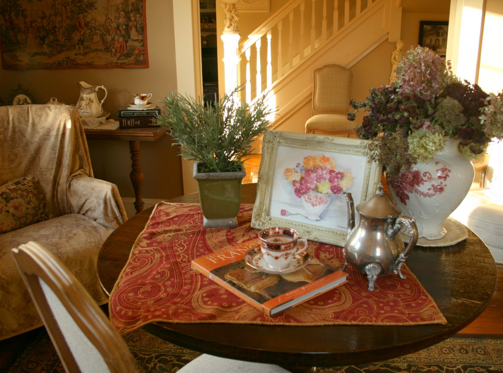 Oh, that is so wonderful! Beautiful painting! I just posted about armchair travel to France and now I see this touch of France in your home...just lovely!