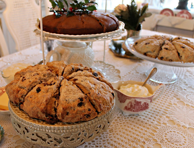 And later we moved out to the kitchen to enjoy hot apple cider and scones with clotted cream,sticky date pudding with caramel sauce and Christmas cookies.