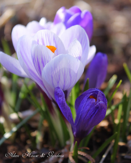 Lovely! Isn't it glorious to be getting some hints of Spring in our area? (I feel closer geographically than we actually are, maybe we are similar zones, um what do you call it? horticulturally? I'm in zone 5.) Today, I walked and took pictures of crocuses in someone's front lawn, just like the white variegated with purple you featured! Are the purple flowers irises? Or blue flag?