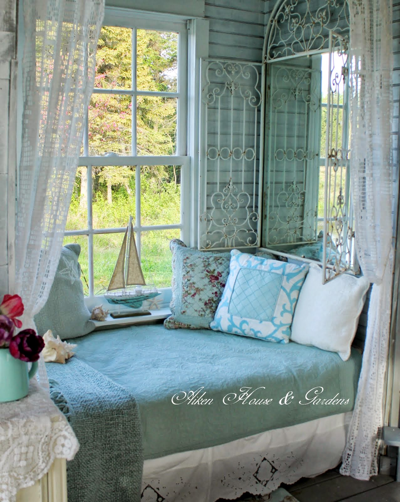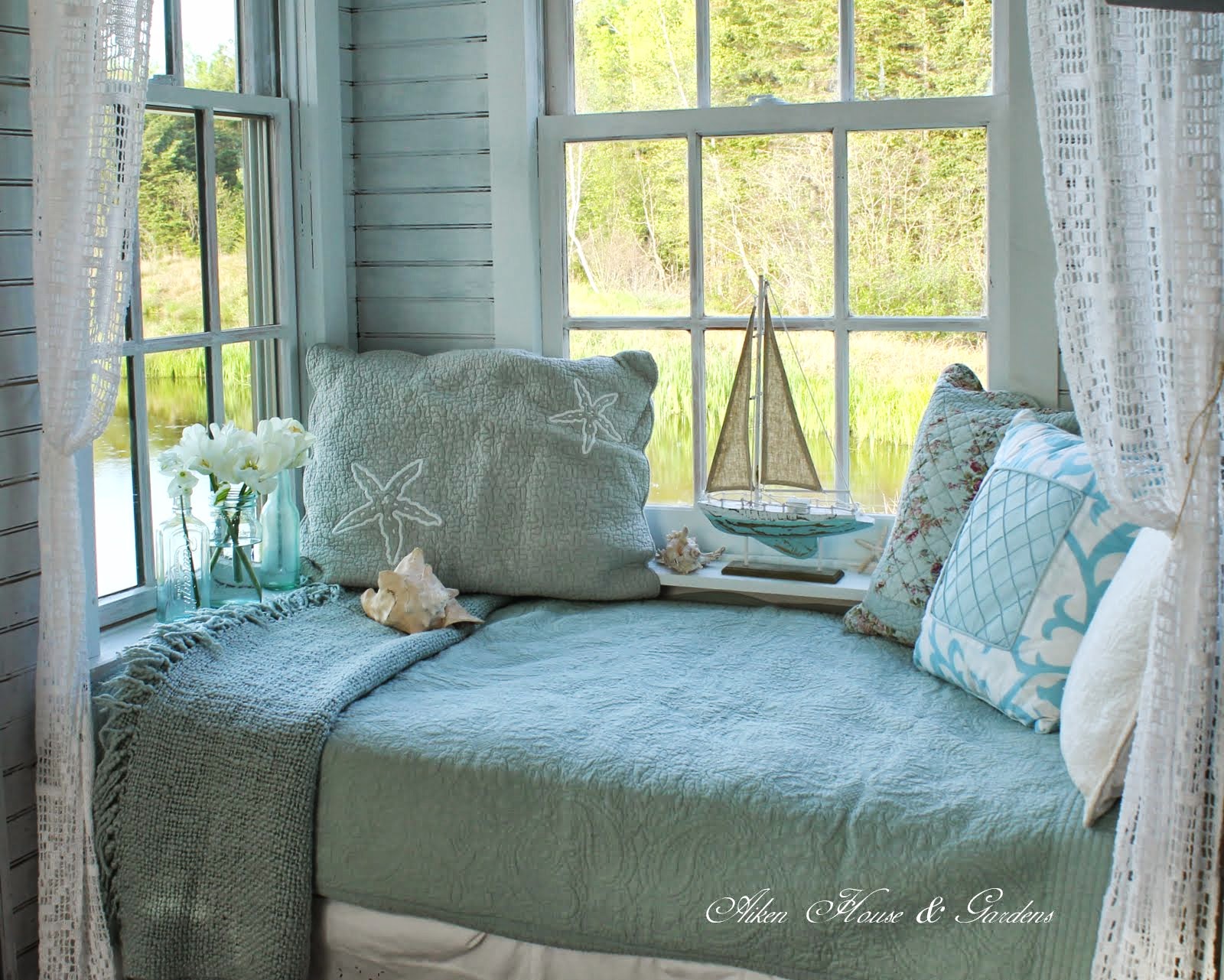 Oh my goodness! I love this sweet little boathouse! It is so pretty with my favourite colours of aqua and all the seaside additions in the decor. I love the bed and the view must be wonderful. What a place to read and nap! Can't wait to see the rest of it. Pamela