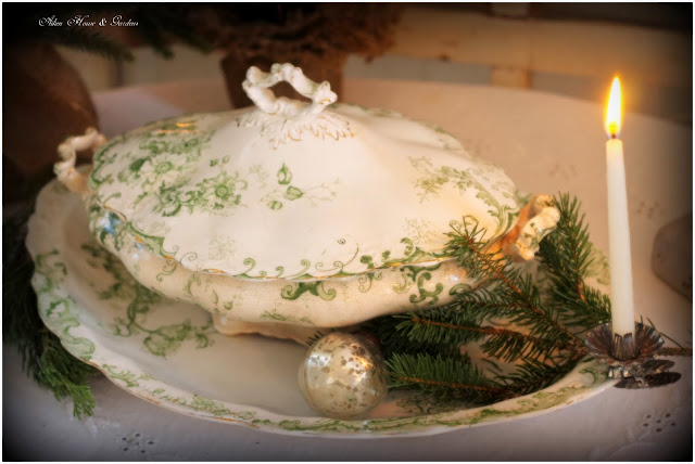 I love that green covered tureen. I haven't seen much green transferware and it would be lovely. Beautiful photos!