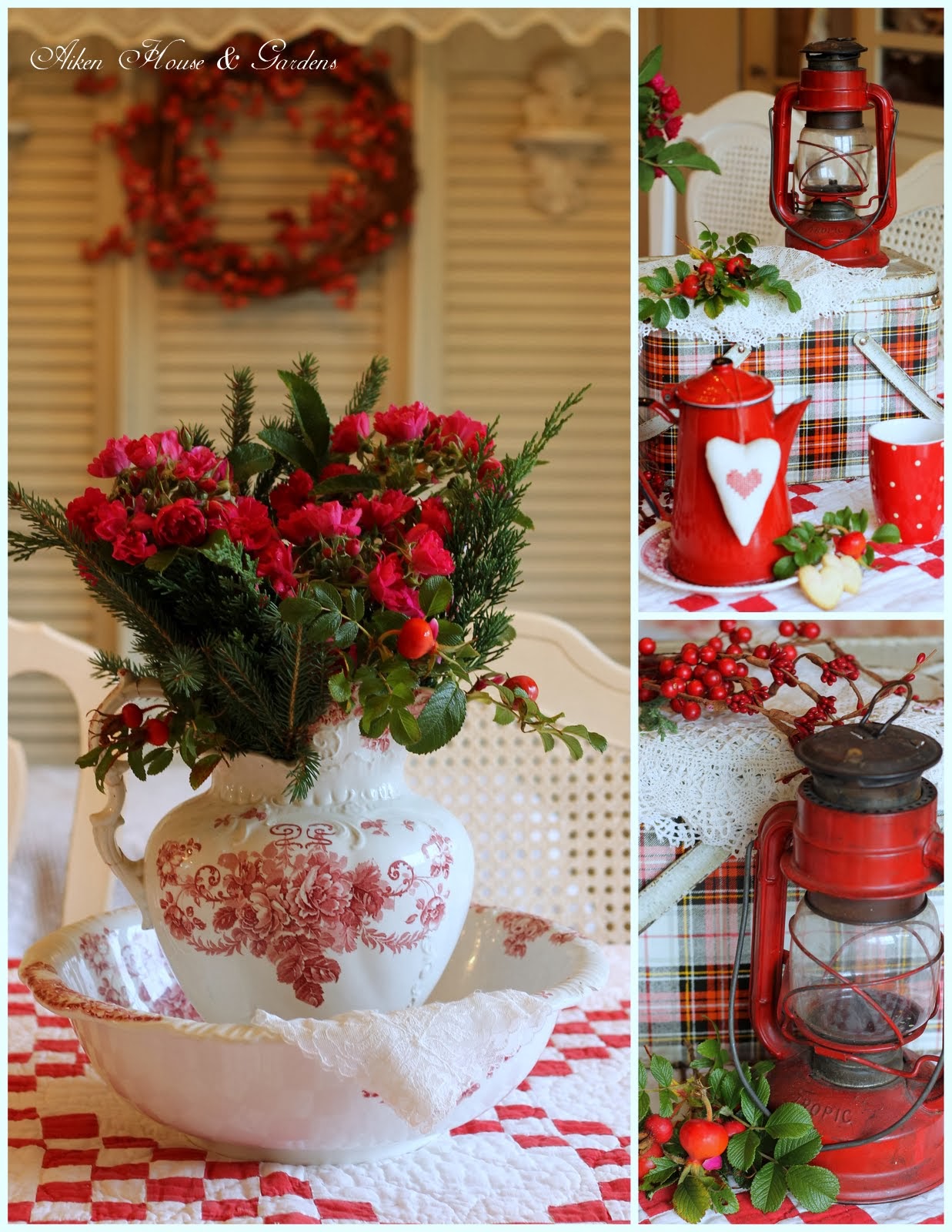 Hello Carolyn...Love the red and white, especially the tablecloth.