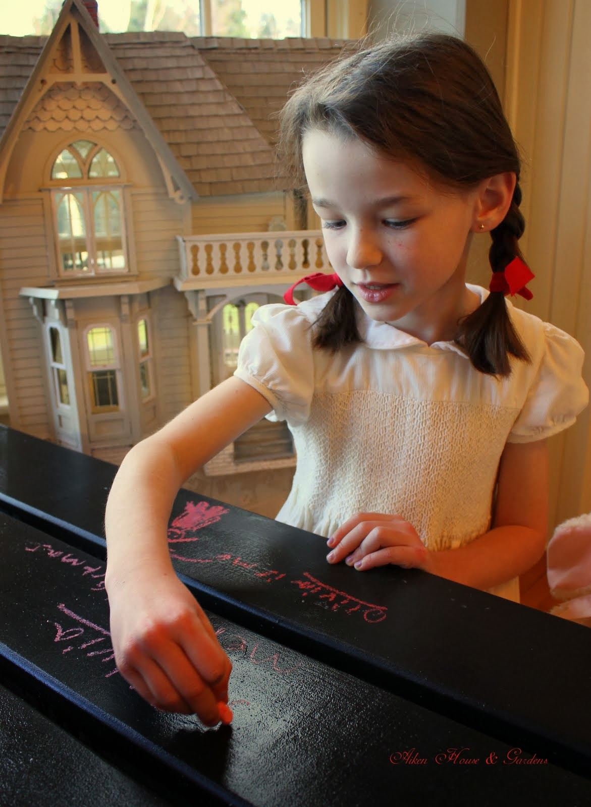 Morning Carolyn, I am a bit behind with catching up on blogs etc.. as my daughter and Harry have been ill and then I caught what they had!! Your grandchildren are beautiful and I love the chalk table.