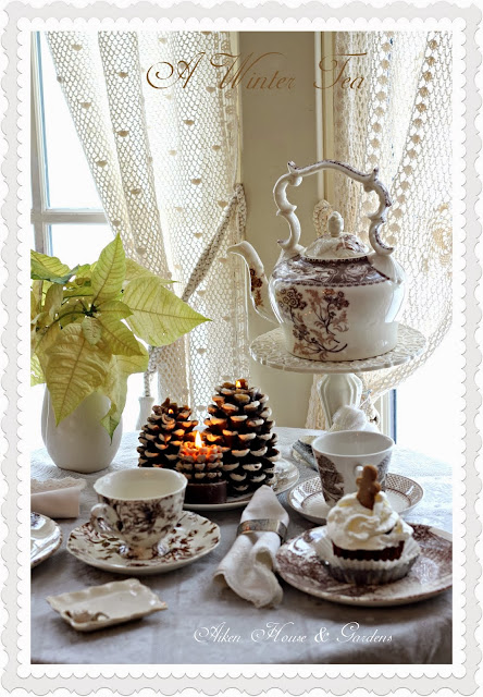 What a lovely afternoon tea setting. I'm not a tea drinker, but those cupcakes look absolutely yummy. I also love your beautiful drapes and those pine cone candles. Perfect setting and photos. Happy New Year.