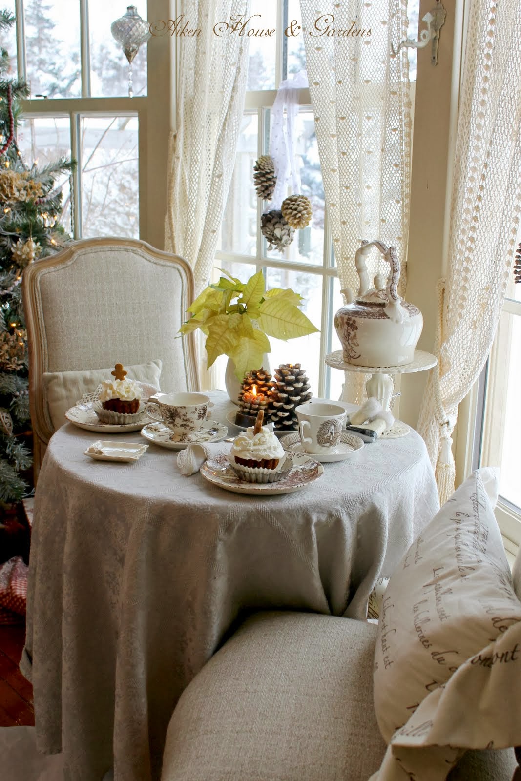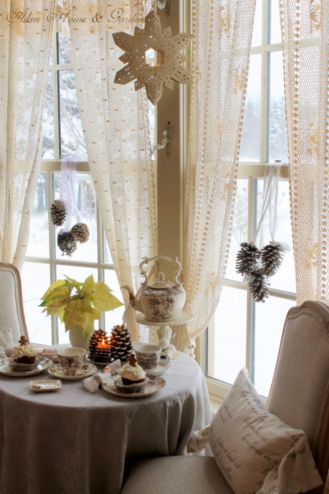 Happy New Year, Carolyn! It has been another wonderful year of enjoying your beautiful pictures and posts. This one is no exception. Your cupcakes have the best icing {and I love that you didn't skimp on it either!}. This looks like a wonderful spot to enjoy your tea while being warm and taking in the snow outside your windows. I love your curtains. They are so pretty. Looking forward to enjoying your posts as we begin 2014.