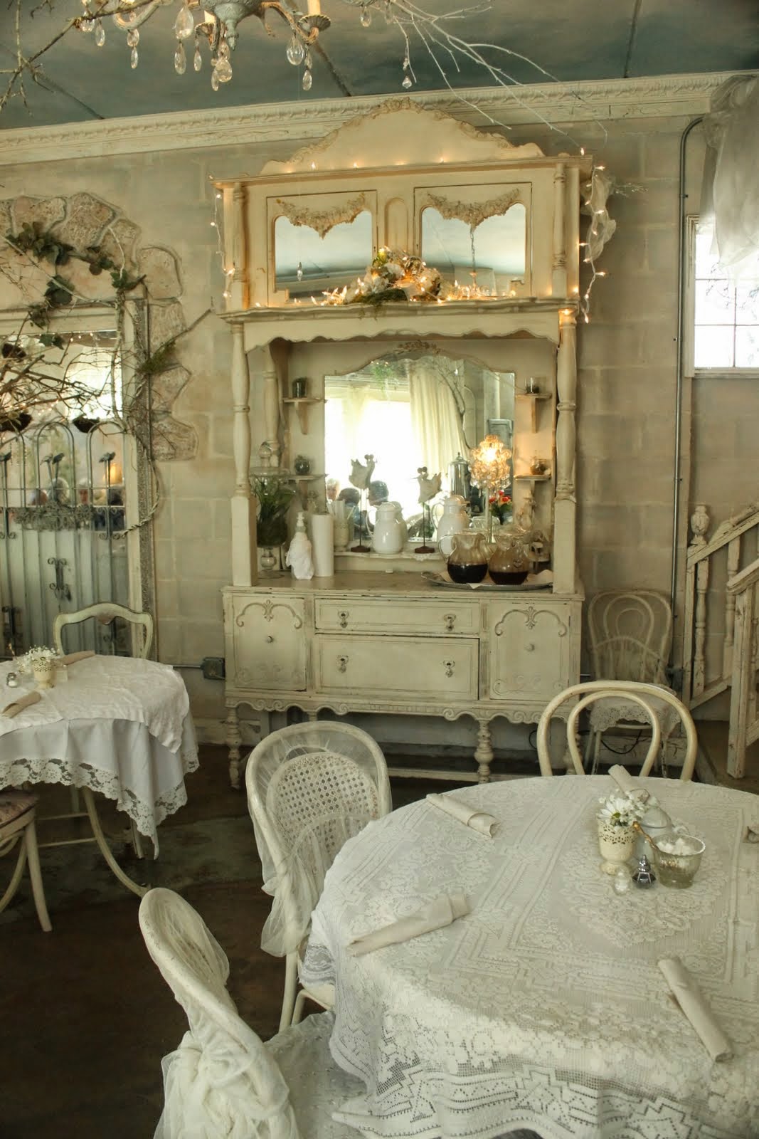 Your tea house has left me swooning! I love the gorgeous cream china cabinet, sweet chairs and amazing china. How I would love to visit there too. What a beautifully shabby chic tea time you must have enjoyed. I must say you do look lovely in your bonnet. I have been to Daytona Beach, Florida many years ago with my sister and father for a music convention. Thank you for sharing such beauty! I love to visit your blogspot! Have a wonderful week!