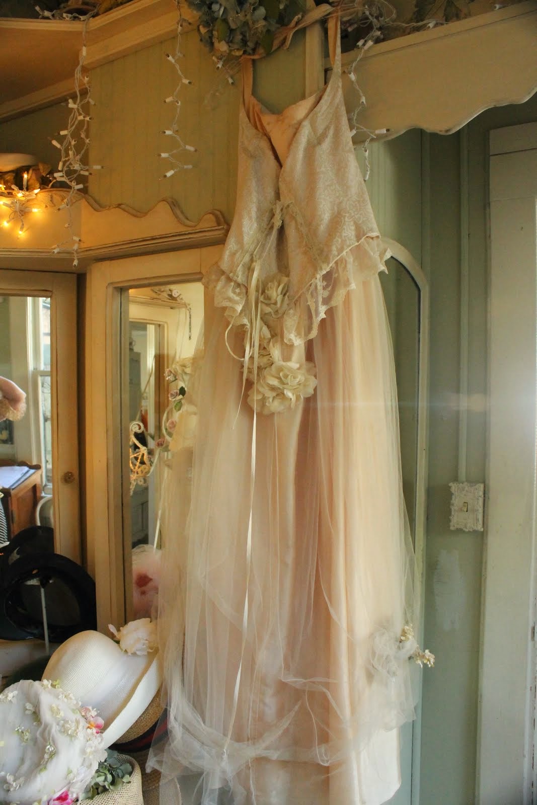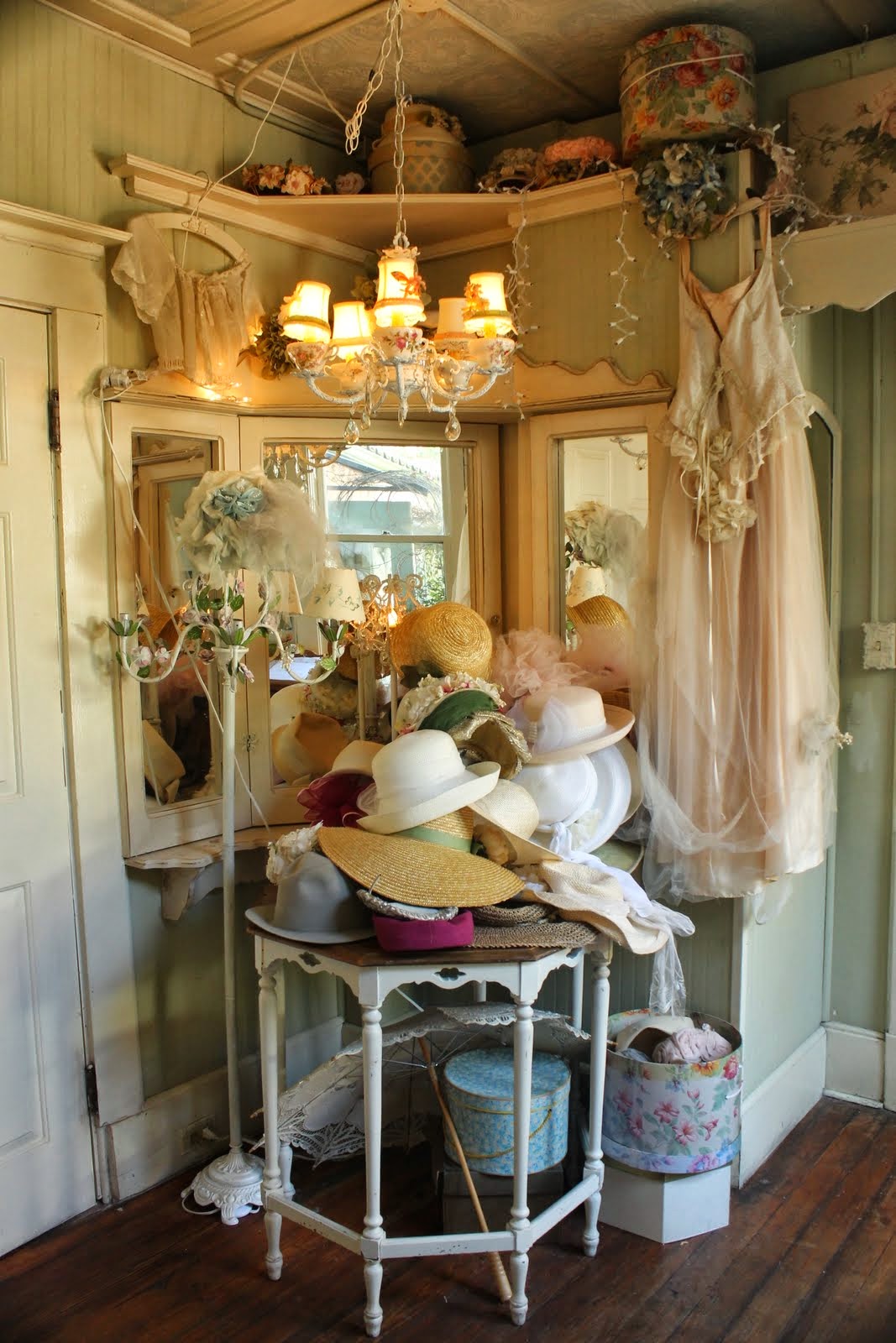 Such a beautiful place Carolyn! The teacups and pots, the hats and dresses...all very pretty! A real treasure trove.