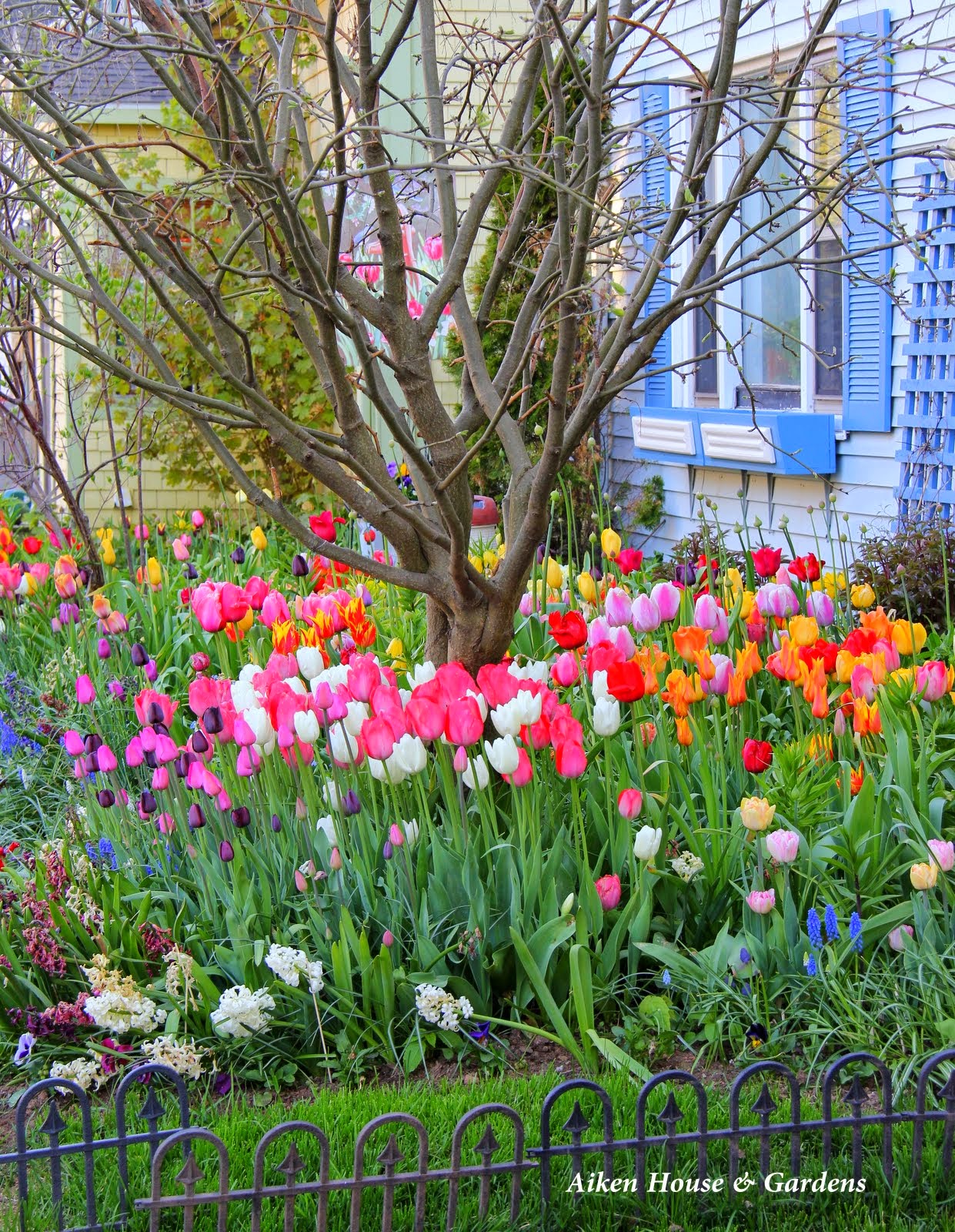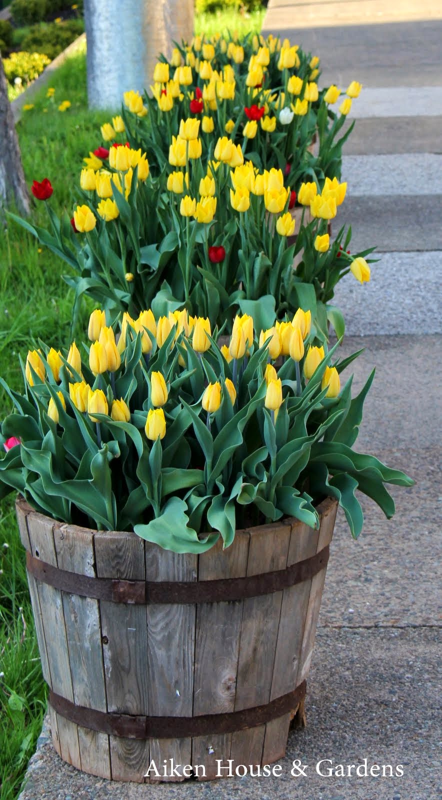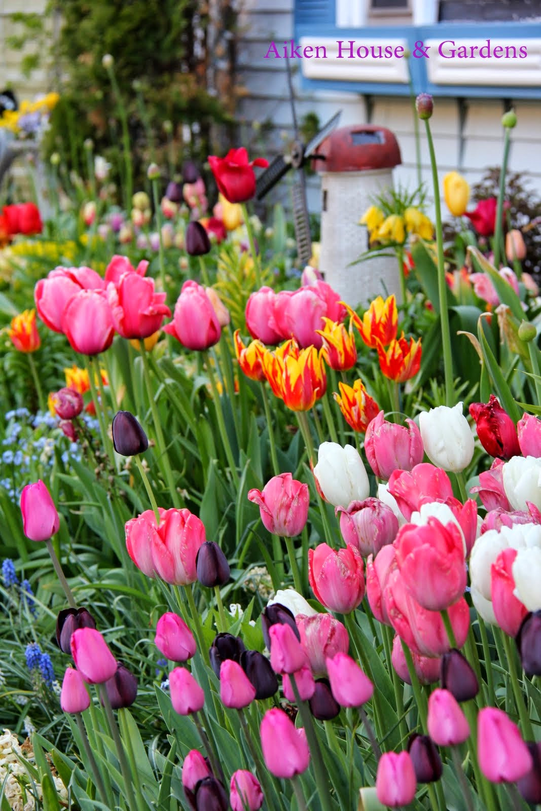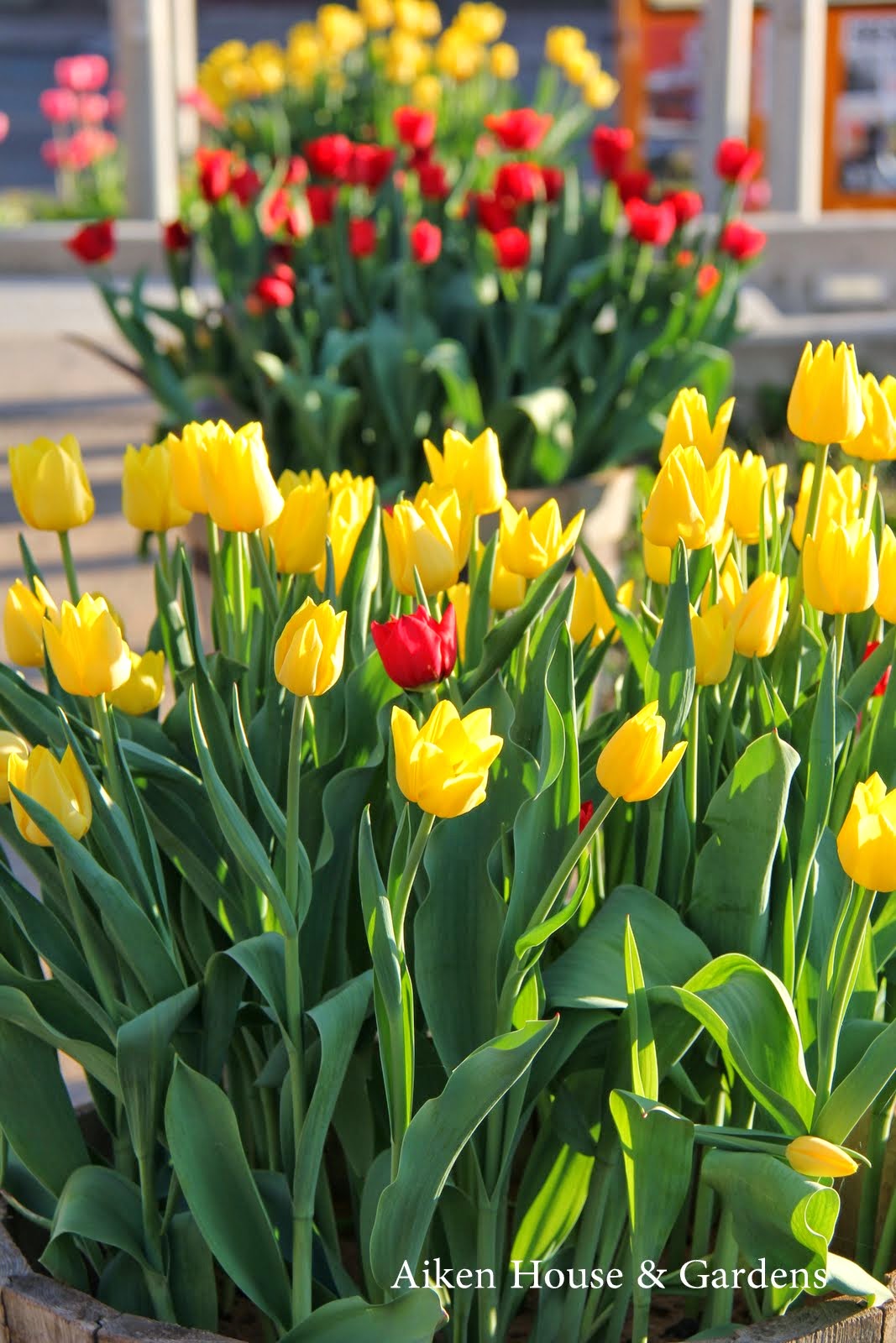 I have never seen fields of tulips! Your flowers are beautiful and I love the way you display. Love the sloshers as well as the watering can and planters. What a beautiful landscape.