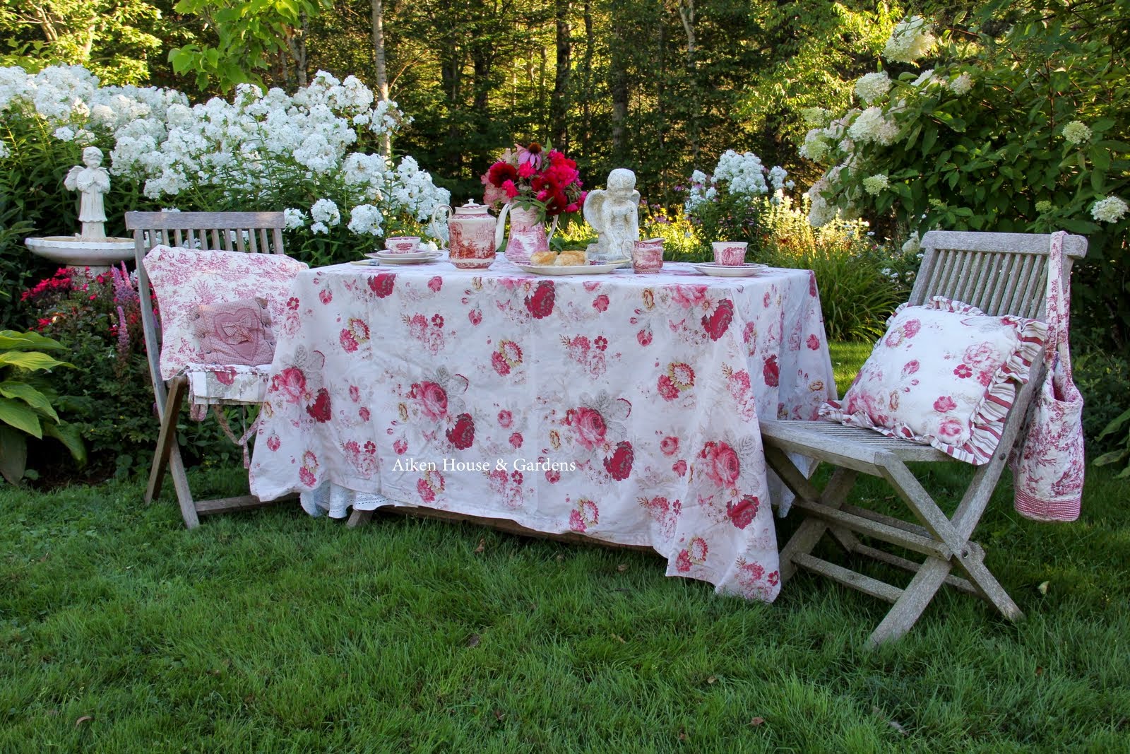 What a lush setting for a September tea party. Your flowers and dishes are lovely.