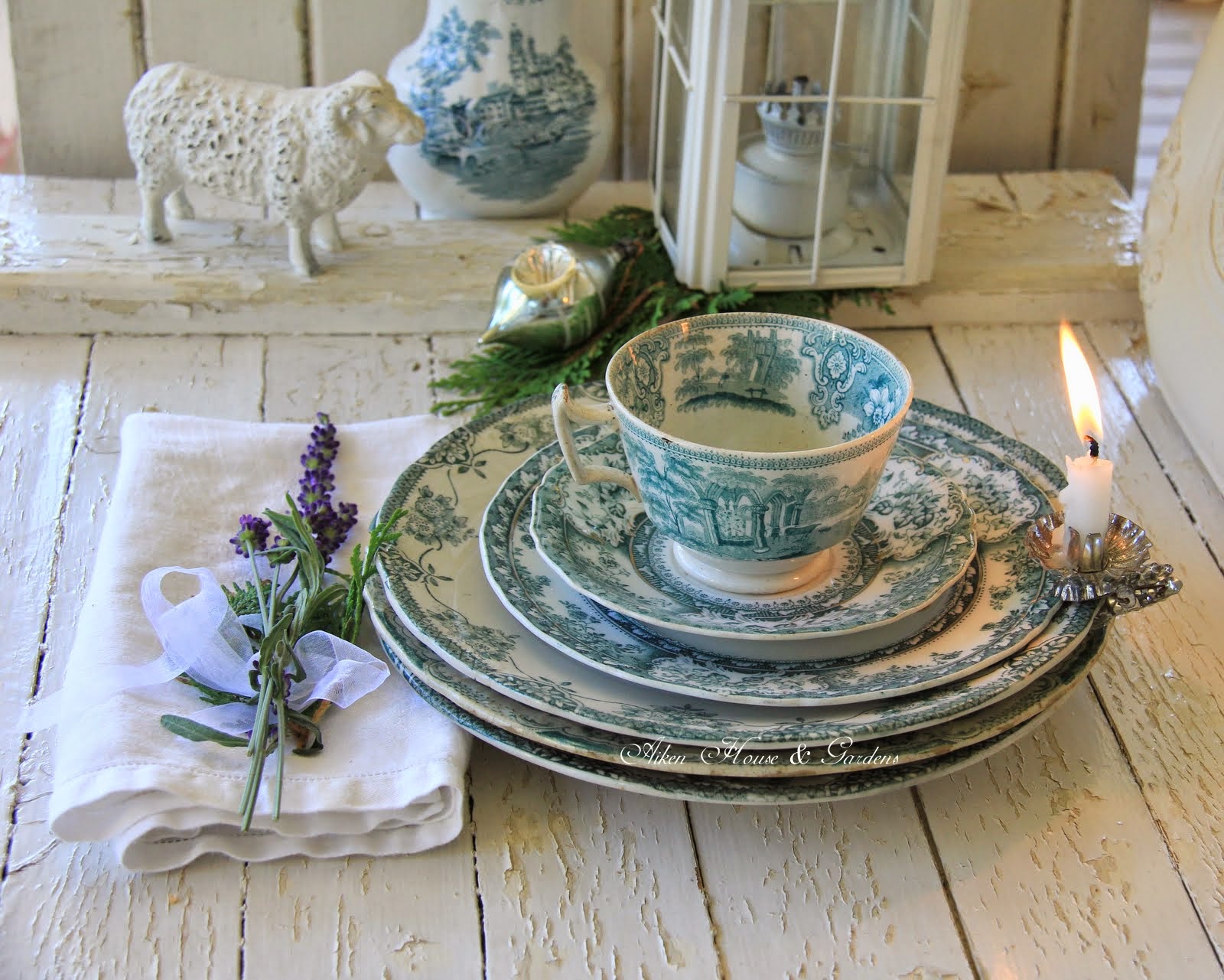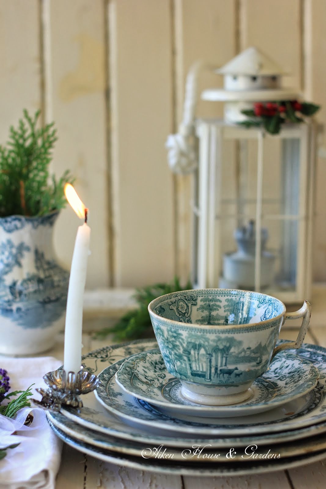 These photos are so pretty. I love the soft blue/green of that transfer ware. Lovely!