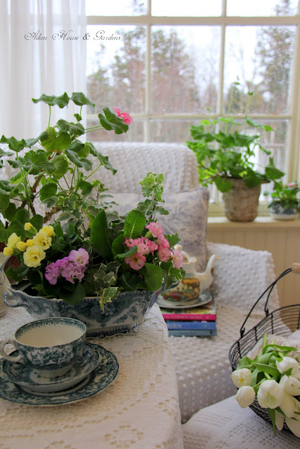 Such lovely thoughts! Very pretty how you have the flowers and plants staged in the transferware. I, too, am looking forward to an early Spring. So tempting to go outdoors now and get dirty, but I have to remind myself that patience is it's own reward. We've had a very mild Winter in Northern Ohio, but experience tells me that Nature isn't finished yet with the possibility of cold and snow. . .I love these images!