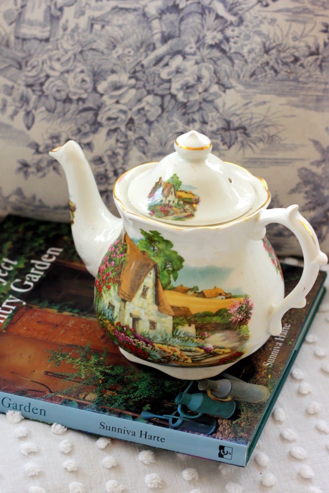 What a lot of pretty plants and I really like your teapot with the English county cottage.