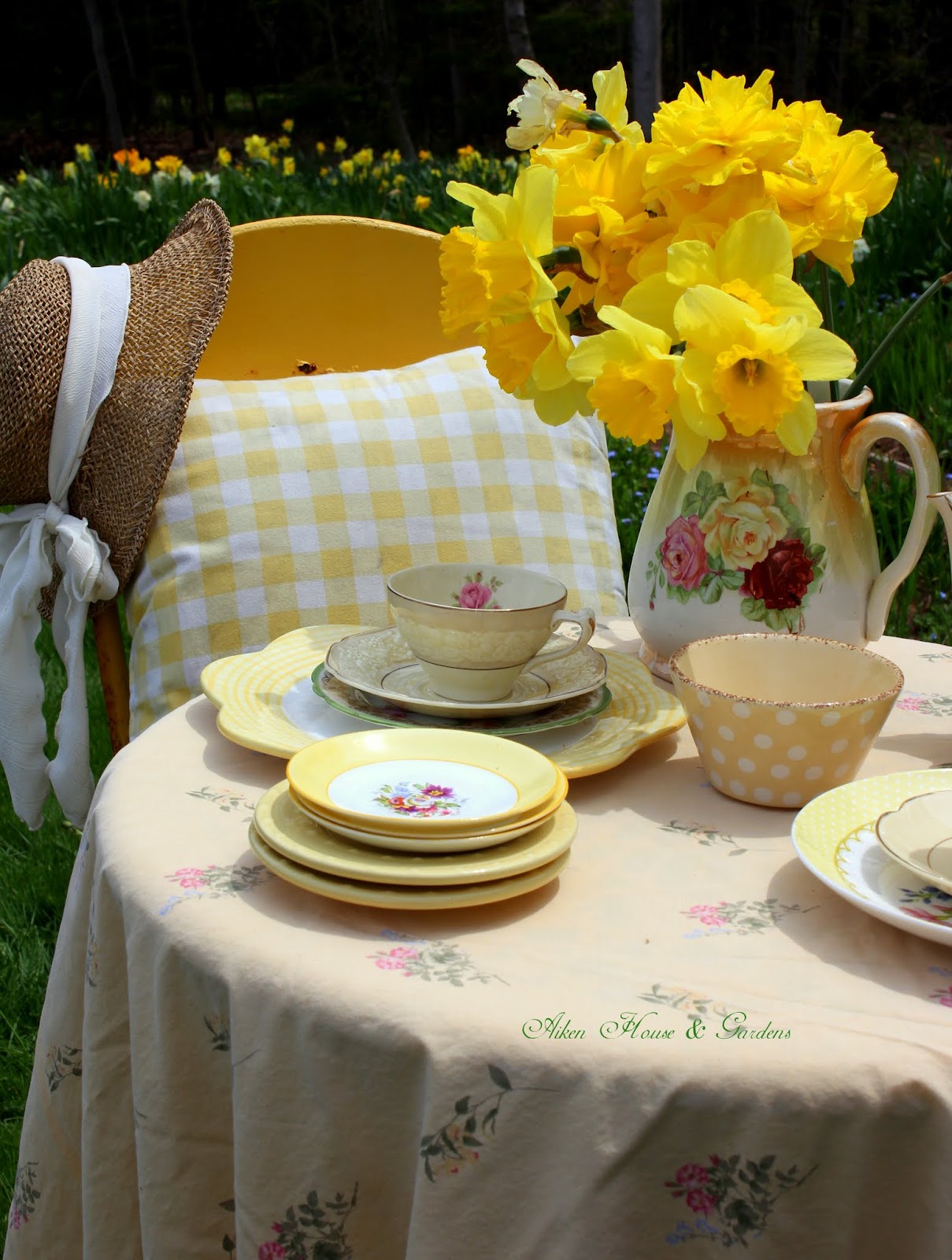 Your setting for tea looks really pretty and inviting. Daffodils are all finished here in the UK and I have buds coming on my roses now and lilacs are flowering in local gardens though not in mine. I love lilacs but have never had one in my own garden.
