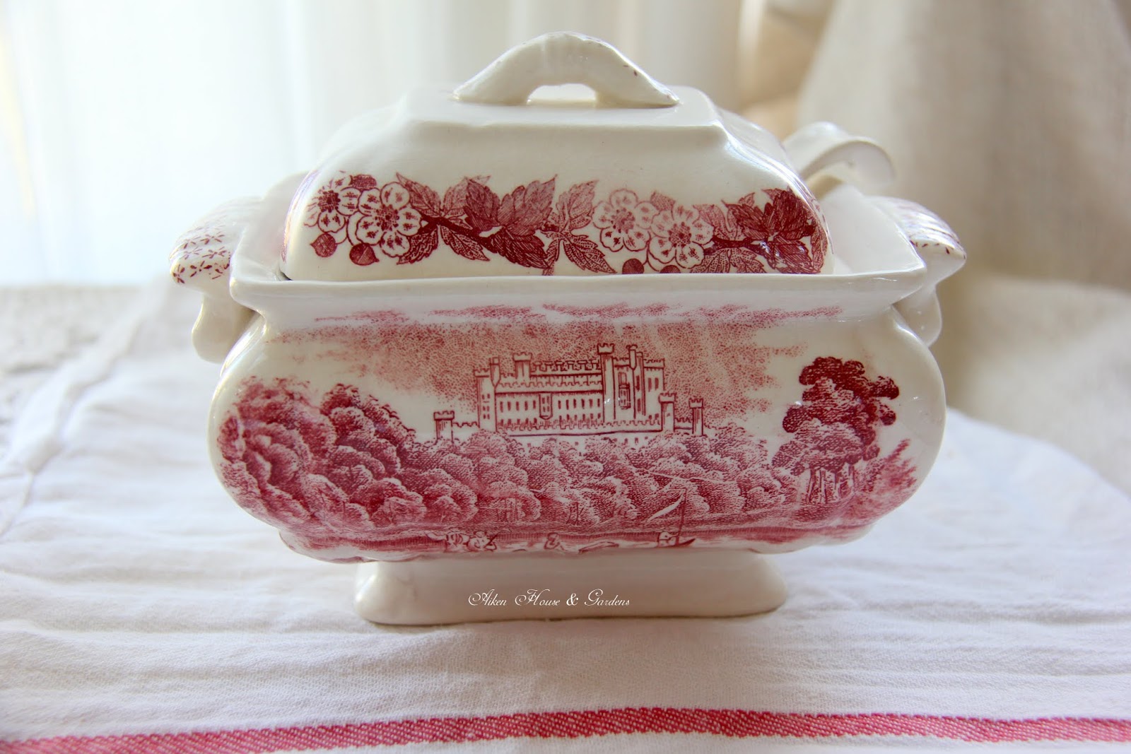 I love the red and white transferware. You have a beautiful garden.