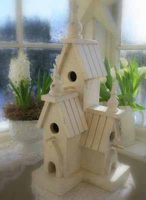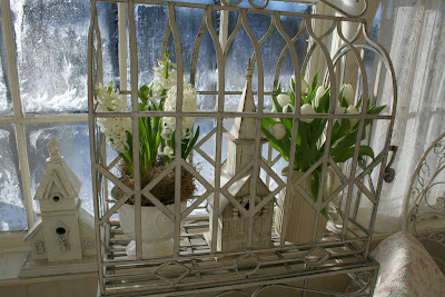 Oh! it is a cold day today at minus 18 Celsius and a wind chill of minus 30. It is good to be warm and cozy indoors! I hope you will enjoy some winter whites in our little sunroom.