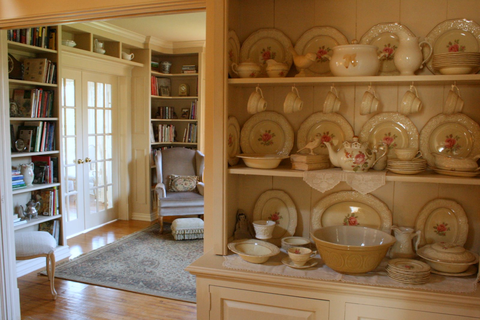 We have been busy lately so I have been absent a bit but I thought I would show you a little change that it completed. Some of you may remember the pretty set of old china I bought a couple of months ago. So now I will show you where they are displayed now.