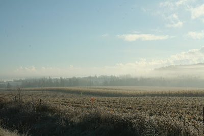 I thought I would pop in and share a few photos that I took yesterday morning when our temperatures had dropped down below freezing but the sun was coming up making a lovely grey foggy morning. We went for a little drive close to home and I got out and took a few pics here and there along the way.