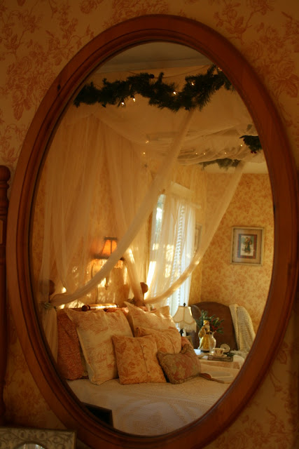 I did a little decorating for Christmas in our bedroom. Village houses on the mantel etc.
