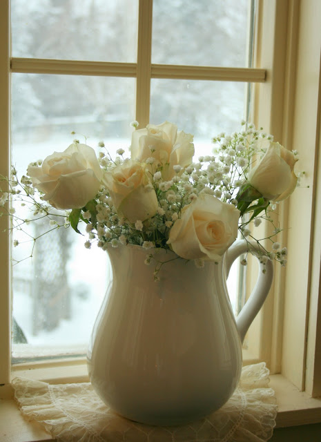 I don't have a lot to share with you today but I thought you might enjoy seeing these beautiful creamy roses.