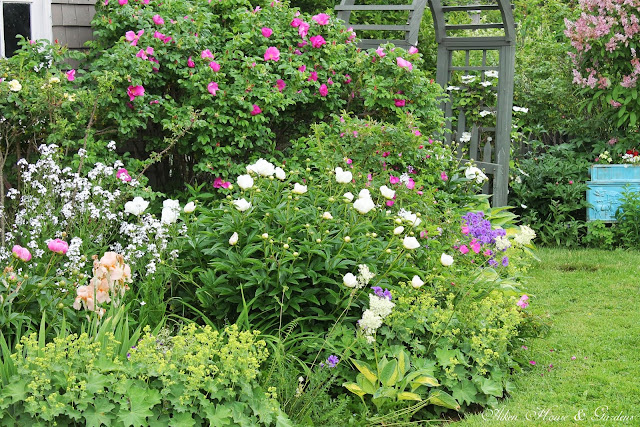 Roses ,peonies, iris ,lady's mantle geraniums and another Preston lilac more pink then Miss Canada.