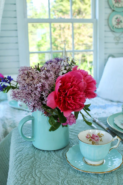 I have several Preston Lilacs here which bloom later so I love extending the lilac season into rose and peony season-some of my very favorites in the garden.The lilacs above are Miss Canada and I love the plum/pink color of them.