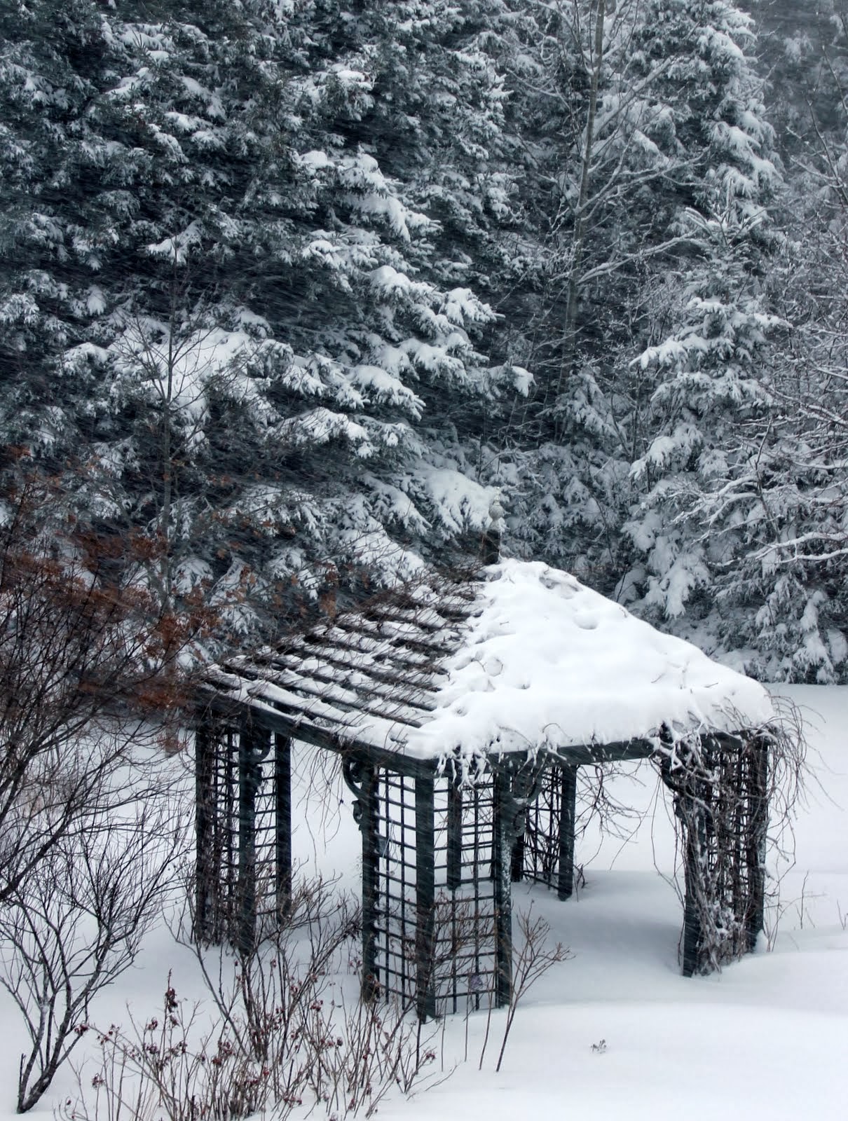 still shining and the trees were laden with new snow. Our